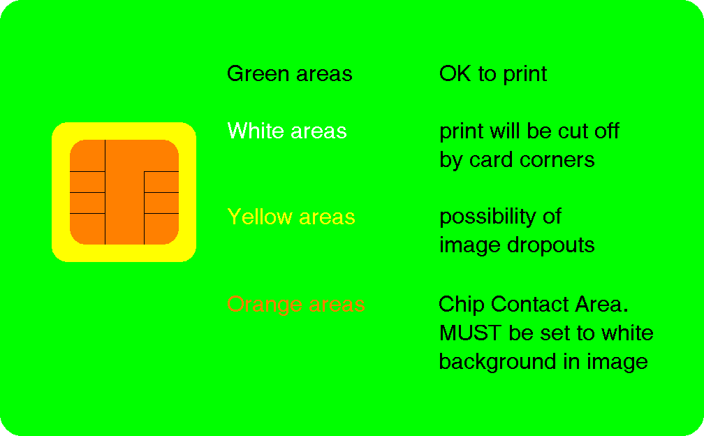 For card printing, we use a photo quality dye-sublimation printer that is designed for printing directly onto PVC cards. This printer produces very good results when printing onto plain PVC cards (ie. ID cards), but there are a few things you have to keep in mind when designing artwork for smartcards.